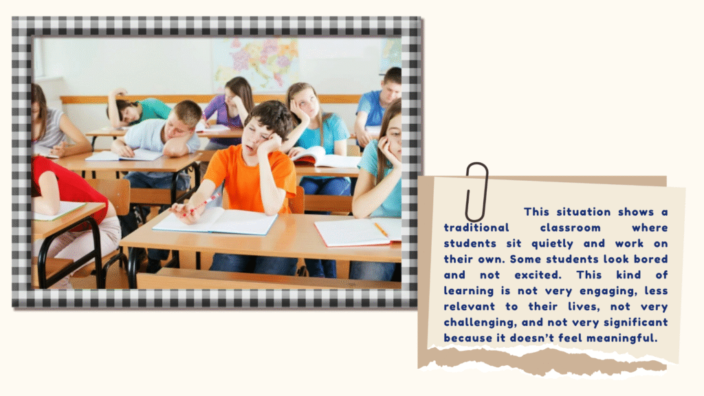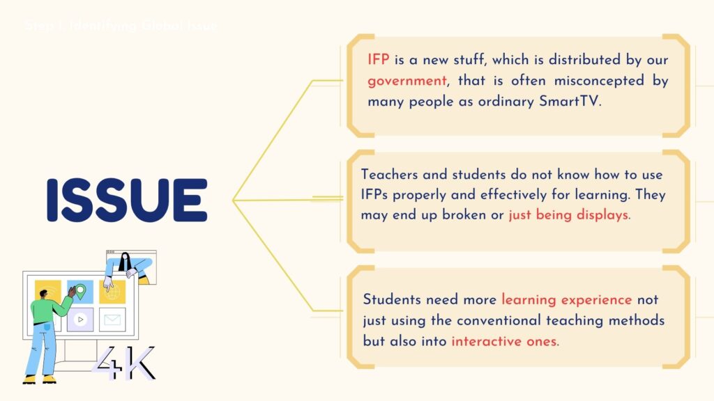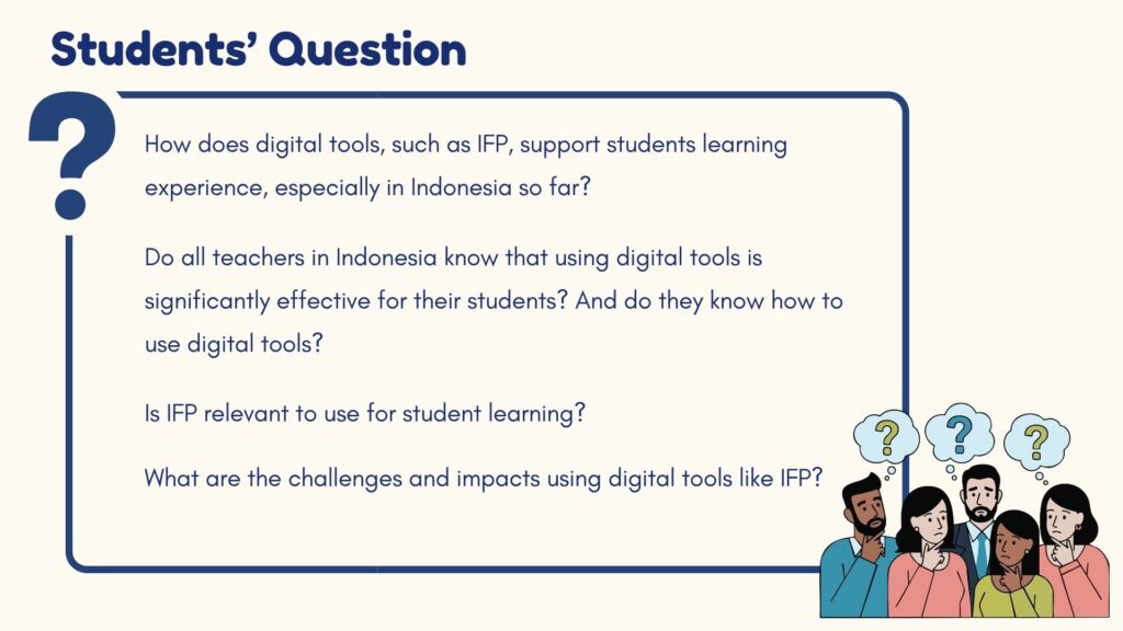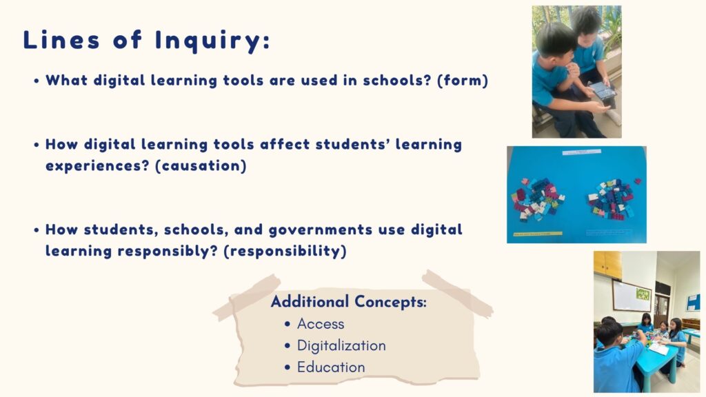 We identified a problem in traditional classrooms where students are less engaged and learning feels less meaningful. We connect this issue to government programs that promote digital learning, such as the use of smart boards and technology in schools. Through this inquiry, we aim to understand how digitalization can improve student engagement and create more effective learning experiences.