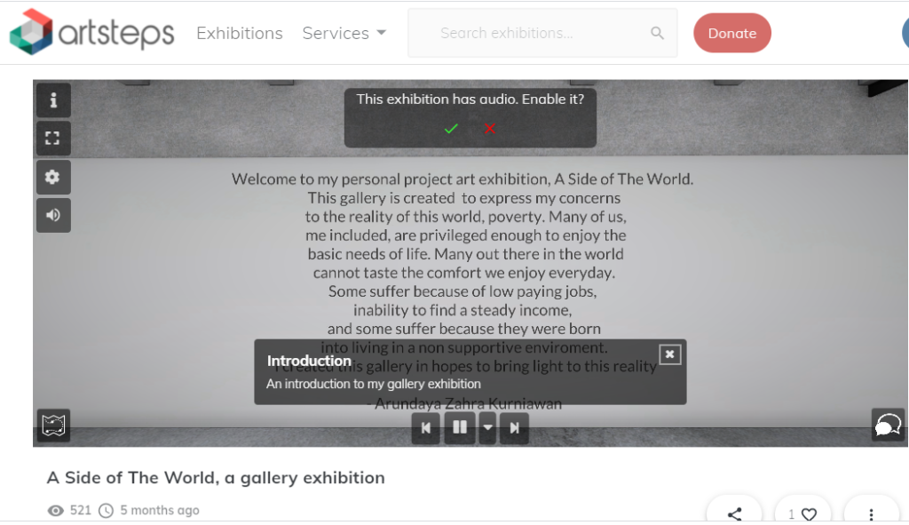 to build awareness to teenagers and adults towards the overlooked issue of poverty by creating a virtual 360° art gallery exhibition.
